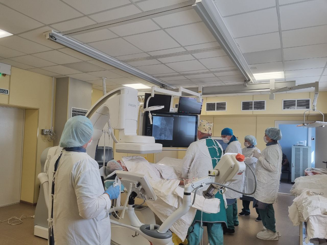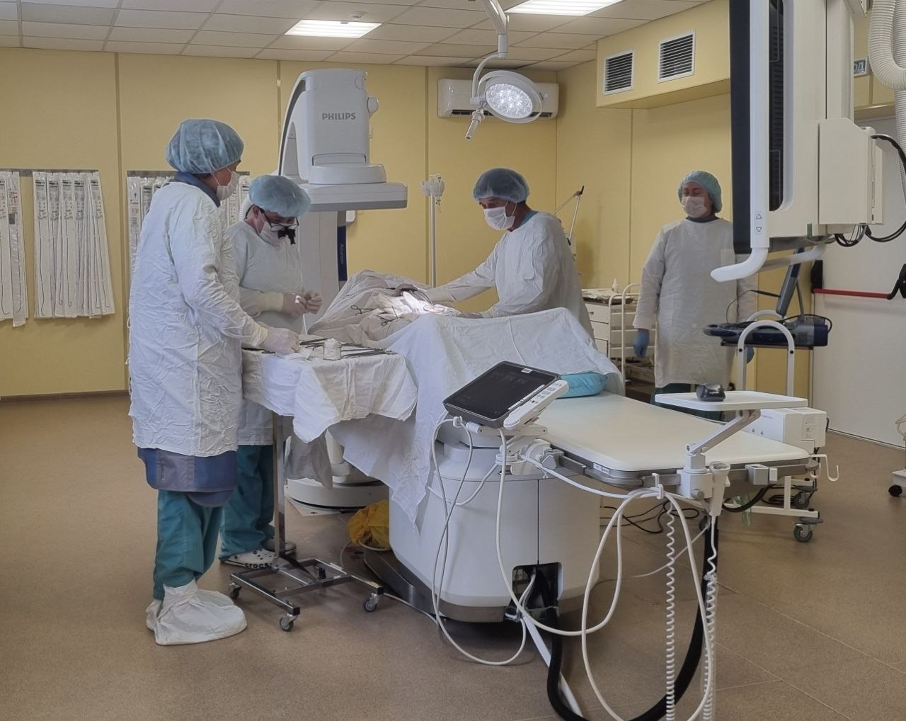 На протяжении трех часов хирургическая бригада в составе врача-сосудистого хирурга Олега Костенко, врача-рентгенохирурга Игоря Илясова и врача - анестезиолога-реаниматолога Артура Полича проводила эндопротезирование.